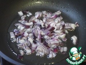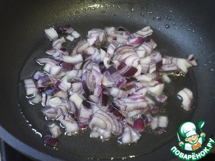 Для начинки потомить на масле мелко нарезанную красную луковицу.