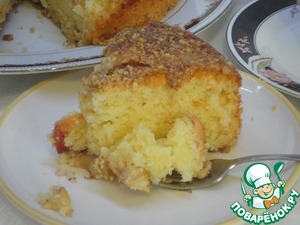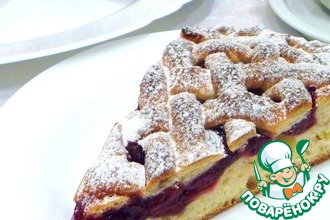 Дать пирогу остыть, посыпать сахарной пудрой (по желанию)и нарезать на порционные кусочки.
