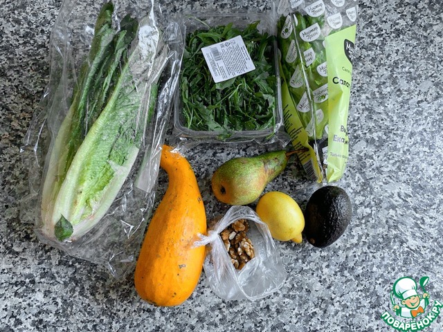 Ингредиенты для «Салат с запечённой тыквой, грушей и авокадо»: