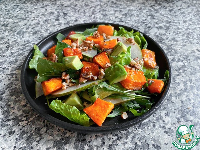 Рецепт «Салат с запечённой тыквой, грушей и авокадо»: