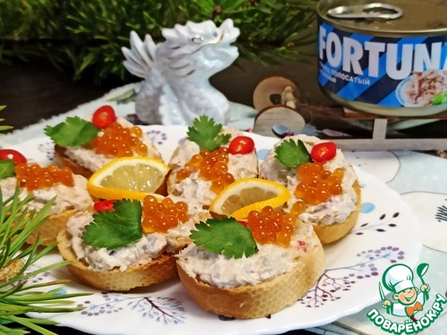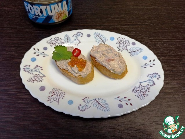 Вкуснейшие бутербродики с пикантным рыбным паштетом можно подать на праздничный стол к любым напиткам и по любому поводу! Паштет приготовлен на основе сливочного сыра с тунцом FORTUNA, копченой форелью и красной икрой. Очень приятный и нежный. Его так вкусно ложкой есть! ))