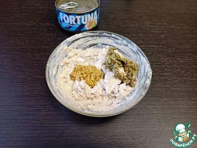 Добавить для пикантности горчицу с зернами и измельченные каперсы.