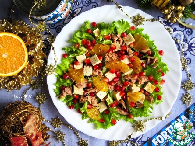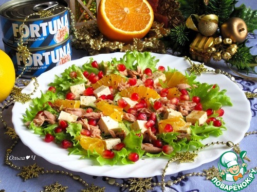 Оригинальный и легкий салат для праздничного новогоднего стола из консервированного тунца ТМ FORTUNA с тофу и апельсином в цитрусово-соевой заправке. Быстро, вкусно и сочно! А для тех, кто не постится, вместо тофу можно использовать любимый сыр. Попробуйте!