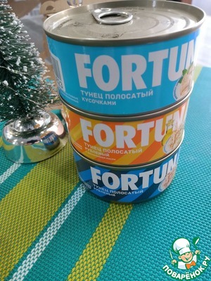 - Тунец (консервированный ТМ Фортуна (вес баночки 185гр)) — 1 бан.