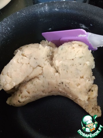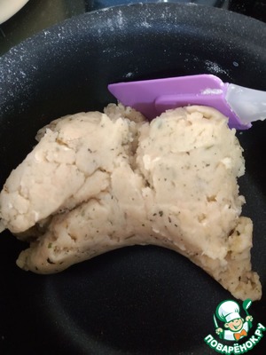 Всыпать сразу всю муку, активно размешивая, заварить ее минуты 2-3, пока тесто не начнет отходить от стенок кастрюли