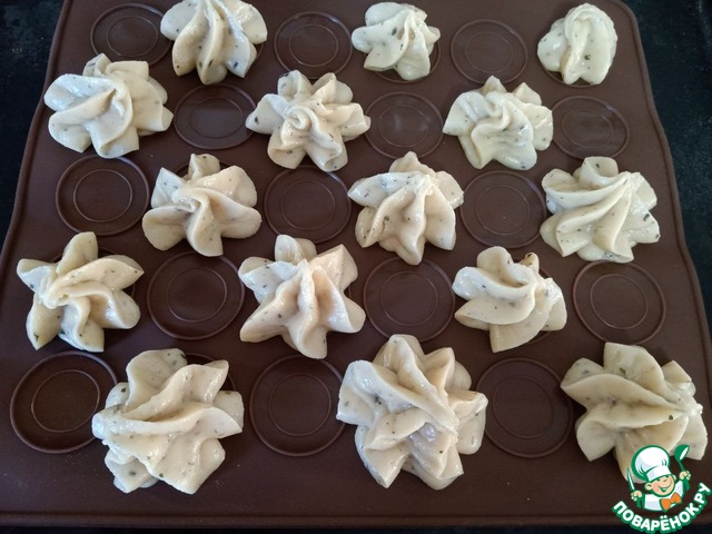 Я выложила тесто в кондитерский мешок с фигурной насадкой, вы можете просто выкладывать тесто на противень ложкой.