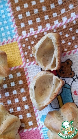 Профитроли надрезать острым ножом так, чтобы получилось что-то типа крышечки. Можно срезать часть верхушки полностью и потом просто накрыть.