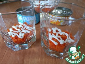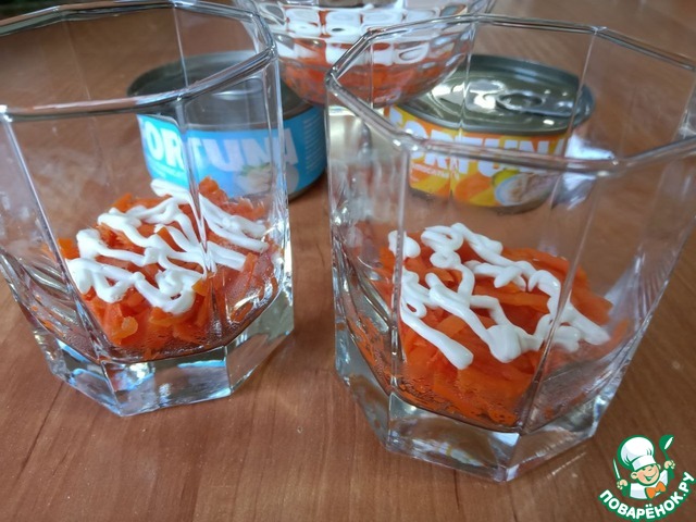 1й слой морковь+ сеточка из майонеза