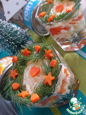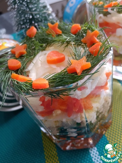 Я украсила укропом в виде веночка, и вырубкой сделала фигурки из моркови.