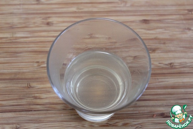 У меня быстрорастворимый желатин - я замочила его в 60 мл воды, а после набухания добавила 60 мл кипятка, размешала - желатин полностью растворился. -