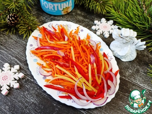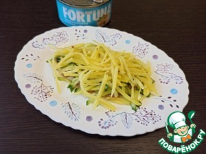 Восточная кухня известна острыми закусками. Давайте порадуем дракона и приготовим салат из острых моркови и картошки, для сытности добавим тунца FORTUNA, а для свежести огурчик. Любители закусок "с огоньком" оценят! С Наступающим!