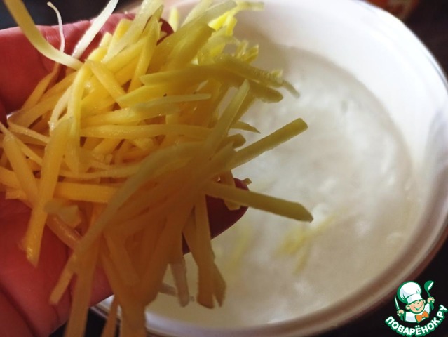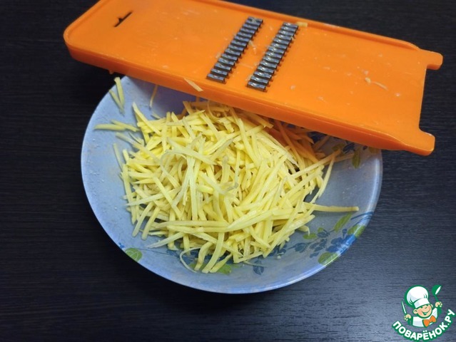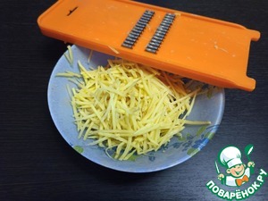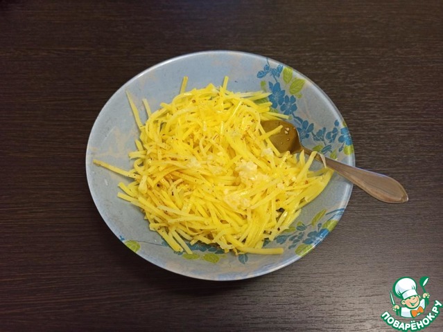 Две крупных картофелины, почистить и натереть на корейской тёрке.
