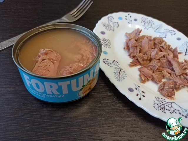 - Тунец (консервированный тунец FORTUNA) — 1 бан.
