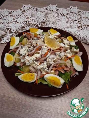 Салат с тунцом и горячей заправкой