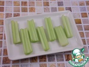 Сельдерей нарезать длинными палочками, примерно по 7 см.