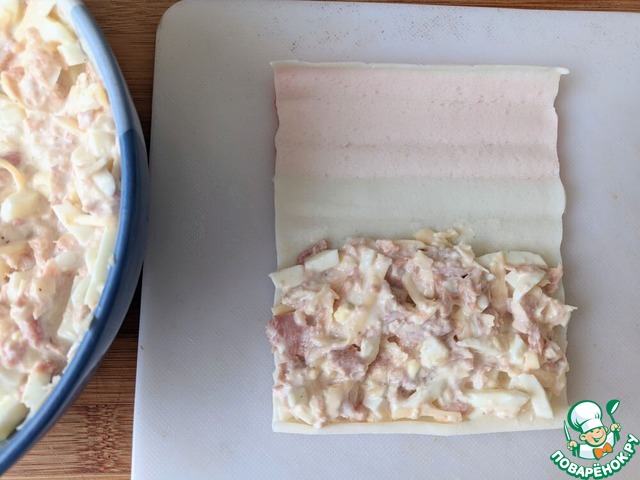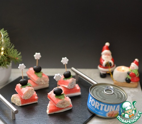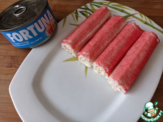 Рецепт «Крабовые палочки, фаршированные тунцом и сыром»:
