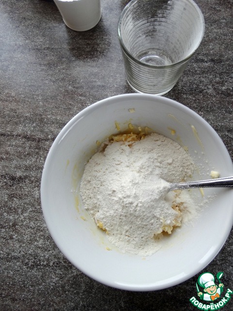 Постепенно добавить муку, замешивая тесто.