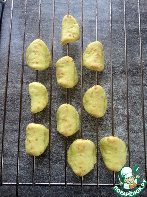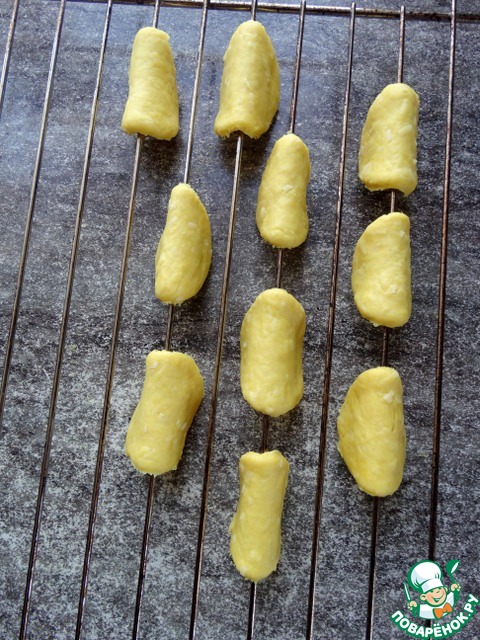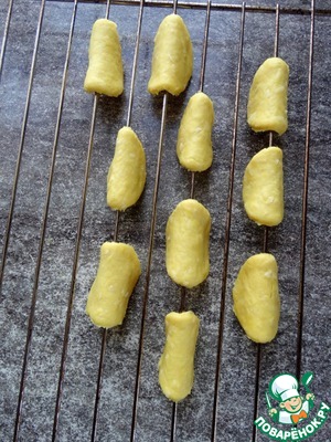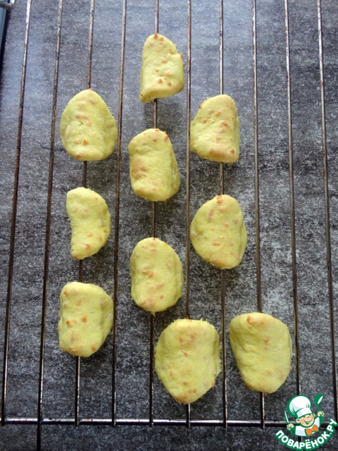 Согнуть кружочки теста пополам и "подвесить" на решётку духовки.