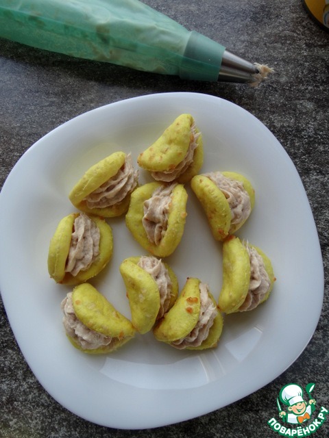 Начинить сырные "раковины" ложечкой или при помощи кондитерского мешка с насадкой.