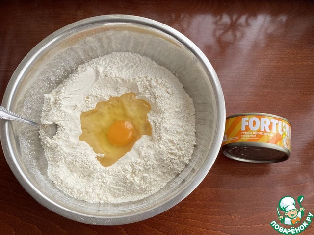В миску просейте муку и добавьте яйцо, соль и растительное масло. Перемешайте до образования крошки.