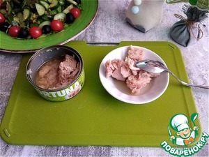 Ингредиенты для «Овощной салат с консервированным тунцом»: