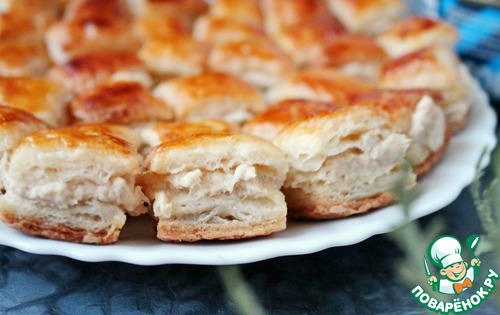 Классная закуска )) хорошо смотрится на столе, но есть 2 момента : в ингридиентах указано 1 яйцо, а по факту надо ещё одно, для того чтобы смазать тесто, это надо учесть и ещё мне не хватило начинки для всех малышей можно смело делать больше. В любом случае рецепт остаётся для повторения. Спасибо за идею