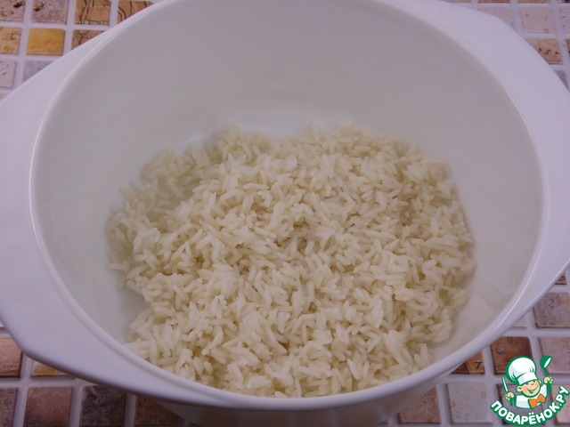 Рис заранее отварить в кипящей подсоленной воде до готовности, 20 -25 минут. Затем воду слить, рис остудить и переложить в миску.