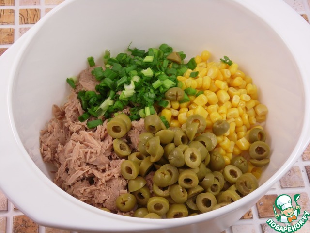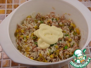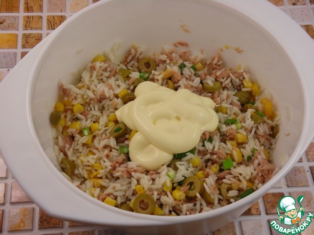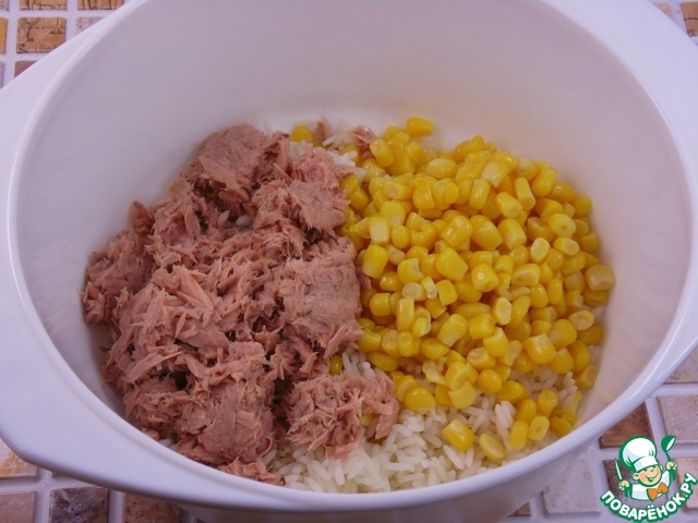Рецепт «Рыбно-рисовый салат с кукурузой»: