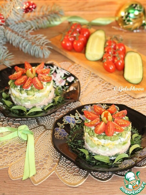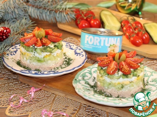Рецепт «Слоеный салат с авокадо, тунцом, черри»: