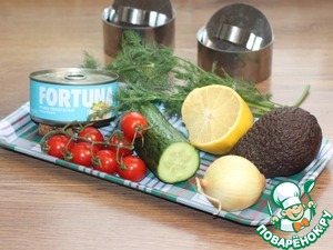 Ингредиенты для «Слоеный салат с авокадо, тунцом, черри»:
