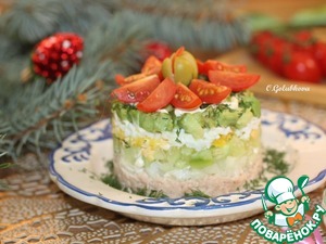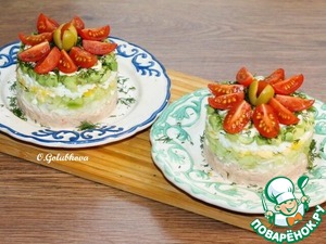Слоеный салат с авокадо, тунцом, черри