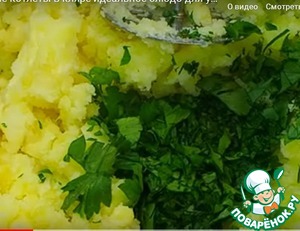 Размять картошку в пюре и добавить соль и зелень.