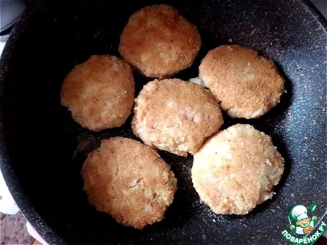 ак они схватились и красиво подрумянились, я их перевернула и дожаривала уже на минимальном огне. Котлеты не разваливаются и отлично переворачиваются - совершенно без усилий. -