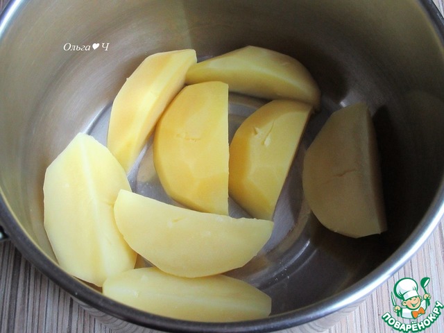 Картофель очистите, отварите до готовности, слейте весь бульон. Я готовила полпорции.