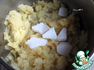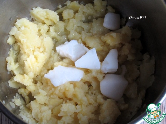 Разомните картофель в пюре, добавьте кокосовое масло, перемешайте.