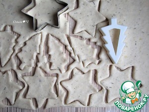 Тесто тонко раскатайте, вырежьте новогодние фигурки.