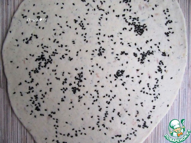 Как вариант просто посыпьте тесто кунжутом или семечками, и пройдитесь скалкой.