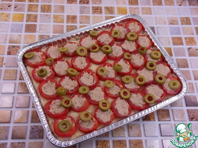 Рецепт «Картофельный пирог с фаршированными тунцом черри»: