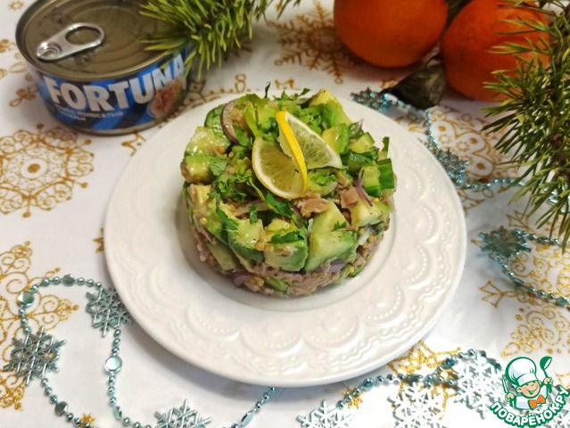 Лёгкий и приятный на вкус салат с консервированным тунцом FORTUNA, авокадо и свежим огурцом. Хоть на праздничный стол, хоть на ужин после праздников. Хрустящий, сочный и простой.