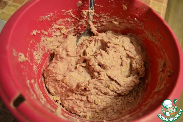 Оставить тесто на 10 минут при комнатной температуре. Тесто получается густым.