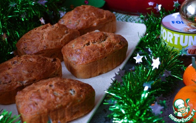 Праздничные, закусочные кексы, на новогоднем столе им точно найдётся место. Сытные, вкусные горячими, ничуть не хуже и "вчерашние". Хорошо взять для перекуса на зимнюю прогулку. Понравятся и детям, ведь явного рыбного вкуса не слышно абсолютно. Рекомендую.