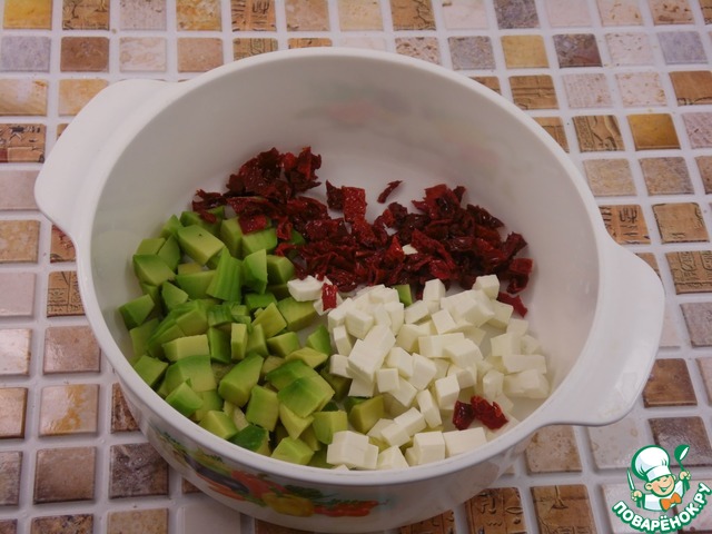 Для начинки авокадо, сыр и вяленые томаты нарезать мелкими кубиками.