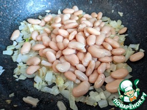 Добавляем консервированную фасоль без жидкости, перемешиваем.