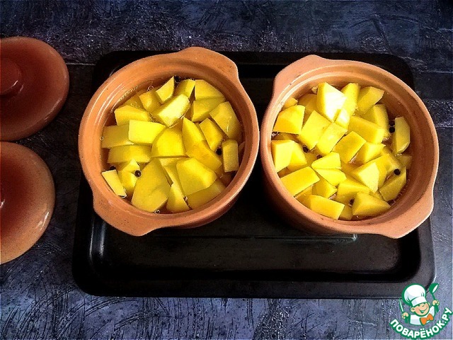 PS: у меня горшки довольно большие. Количество ингредиентов можно разместить и в 3 горшка поменьше объёмом. Получится 3 порции. Для обильного застолья - самое то!