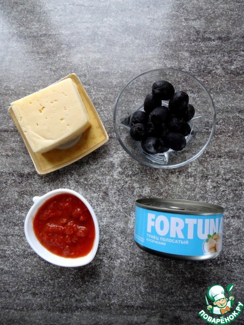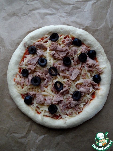 Ингредиенты для «Пицца с тунцом и маслинами»: