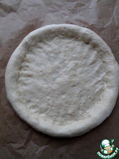 Из поднявшегося теста сформировать круг, можно сделать большие бортики или чуть меньше, как вам нравится)).