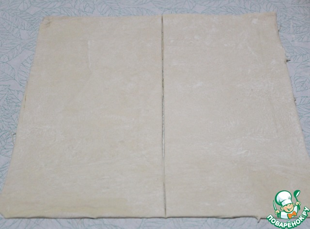 Накрыть вторым пластом теста и разрезать на ленточки.