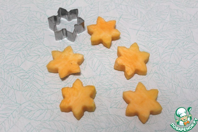 Морковку или огурец разрезать на не тонкие шайбы - я вырезала формочкой.
