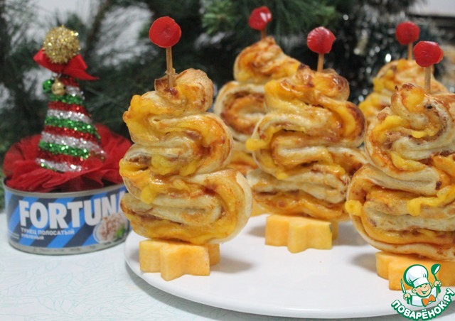 Вкусная и эффектная закуска несомненно украсит ваш новогодний стол! Нежный тунец ТМ Fortuna, сливочный сыр, пикантный кетчуп и воздушное слоеное тесто - отличное сочетание! Пробуем?