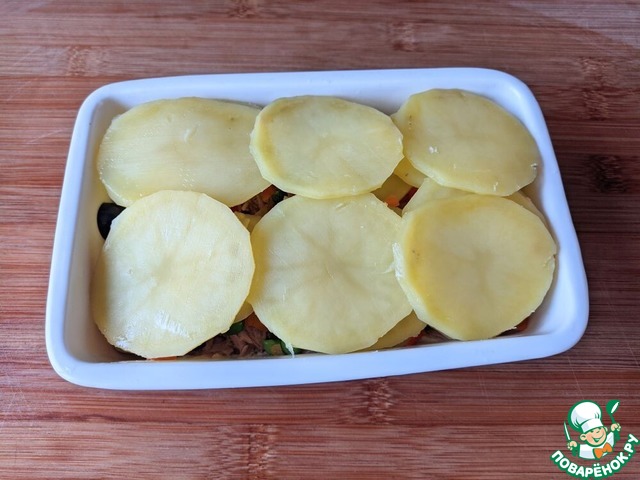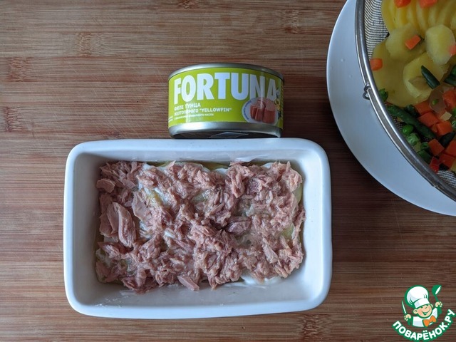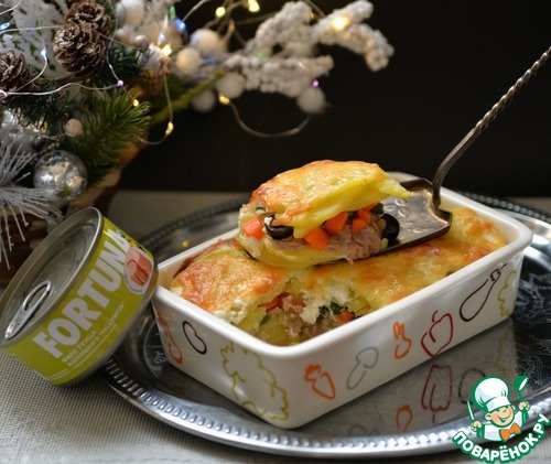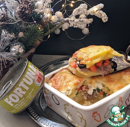 Рецепт «Гратен из картофеля, овощей и тунца»: